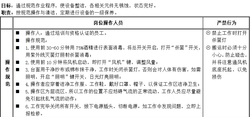 超凈工作臺標(biāo)準(zhǔn)操作規(guī)程介紹